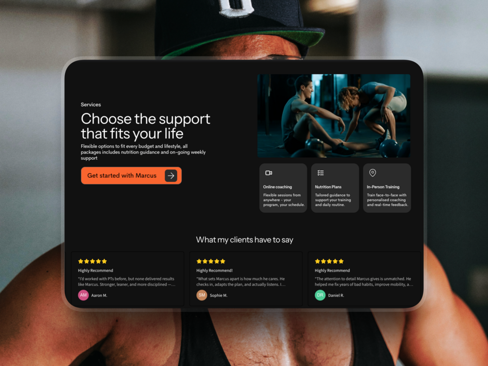 A professionally designed Wix Studio landing page template built specifically for personal trainers who want a modern, high-converting website without starting from scratch. The template combines strong visual hierarchy, conversion psychology, and practical setup to help turn visitors into enquiries.